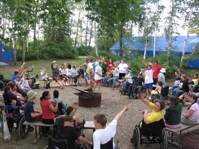 All campers have the opportunity to experience familiar and new activities throughout their week at camp. Campers choose from a variety of arts and crafts, performing arts; lake front activities such as canoeing, paddle boating, barging, fishing, tubing, etc.; recreational activities such as wall climbing, swimming, mini-Paralympics; sporting activities such as baseball, bocce, volleyball, floor hockey; as well as out tripping opportunities such as campfires, camp-outs, outdoor meals and field trips.